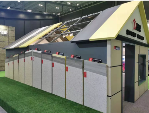 道爾頓本次參展與往年不同的是,本次參展是以保溫板材粘貼在小房子的外墻、內墻、屋面來進行展示,非常形象直觀的將保溫材料的施工工藝展示給參館觀眾,成為E4展館最為亮麗的風景線之一。